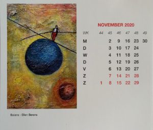 Het schilderij Balans van Ellen Selder Berens is uitgekozen als verwerkingskunst rondom kanker en staat nu afgebeeld bij de maand november op de jaarkalender 2020 van stichting Chaja www.stichtingchaja.nl